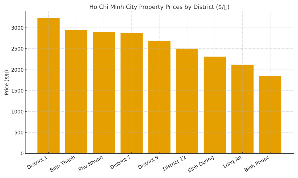 | 第一郡(District 1) | VND 82,000,000 | ~$3,230 | 1.87% – 5.03% | Vinhomes Central Park: ~$109,589 |